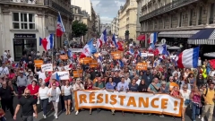 The march was organized by the right-wing Les Patriotes (The Patriots) party led by Florian Philippot, the former deputy head of Marine Le Pen’s National Rally. Dubbed “the national meeting of resistance,” the rally attracted “thousands and thousands” of people, according to Philippot, who was also a member of the European Parliament between 2014 and 2019.