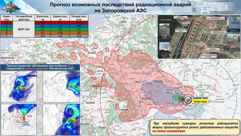 Giovedì, in una dichiarazione separata, Igor Kirillov, che dirige le truppe nucleari di difesa biologica e chimica della Russia, ha affermato che la sua direzione ha modellato possibili scenari per un disastro nella pianta di Zaporozhye. Un pennacchio di materiali radioattivi dal sito può raggiungere la Polonia, la Slovacchia e la Germania, ha avvertito.